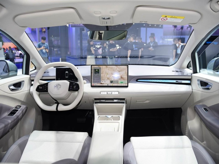 进入车内,全新MG4展现了简洁、科技感十足的内饰风格。提供蔷薇紫和黛山蓝两种内饰配色,给人焕然一新的感觉。中控台设计简洁且极具科技感,隐藏式空调出风口取代传统机械按键,减少物理按键,增加了整车的现代感。方向盘采用双辐式设计,并新增加热功能,而怀挡式换挡机构则提升了驾驶的舒适性。副仪表台区域还特别增设了50瓦无线充电面板,满足现代消费者对智能设备的需求。全景天幕的配备以及带有遮阳帘的设计,让车内光线更加通透,提升了乘车的舒适体验。