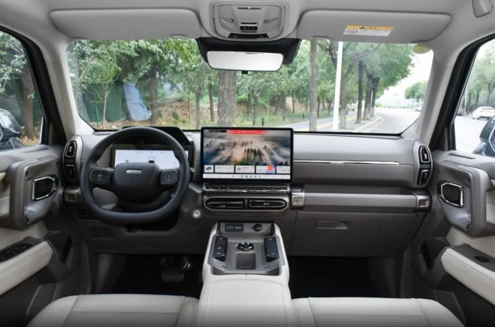 内饰方面,新车并没有对现款车型的内饰设计风格做出明显调整,整体保留了以细腻、结实风格为主调的座舱气息。对于硬派越野车着迷的年轻朋友,可能会对新车这类内饰设计抱有很大兴趣,其没有一味地追求“Old Money”那种朴素无杂的实体按键座舱设计,而是融合现代流行科技属性,将前排打造成一个新手小白也可以轻松上手的驾驶舱。细节上,双幅式多功能方向盘的触感较为细腻,缝线较为工整,触摸几乎没有硌手感。